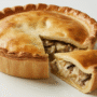 Golden flaky pastry pie filled with tender chicken breast and fresh mushrooms in a creamy white sauce. Perfect comfort food that can be heated from frozen.